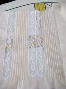From here I forgot to take photos, but the bottom was edged in a lace edging, then a second row of straight insertion applied above that, then the underneath fabric cut away. It called in the pattern for a narrow hem, but I wanted it more pretty than that.