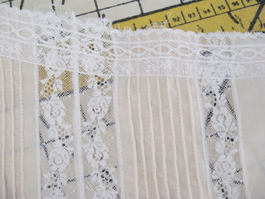 I sewed up the sides then, using more lace insertion, trimmed away the seams.